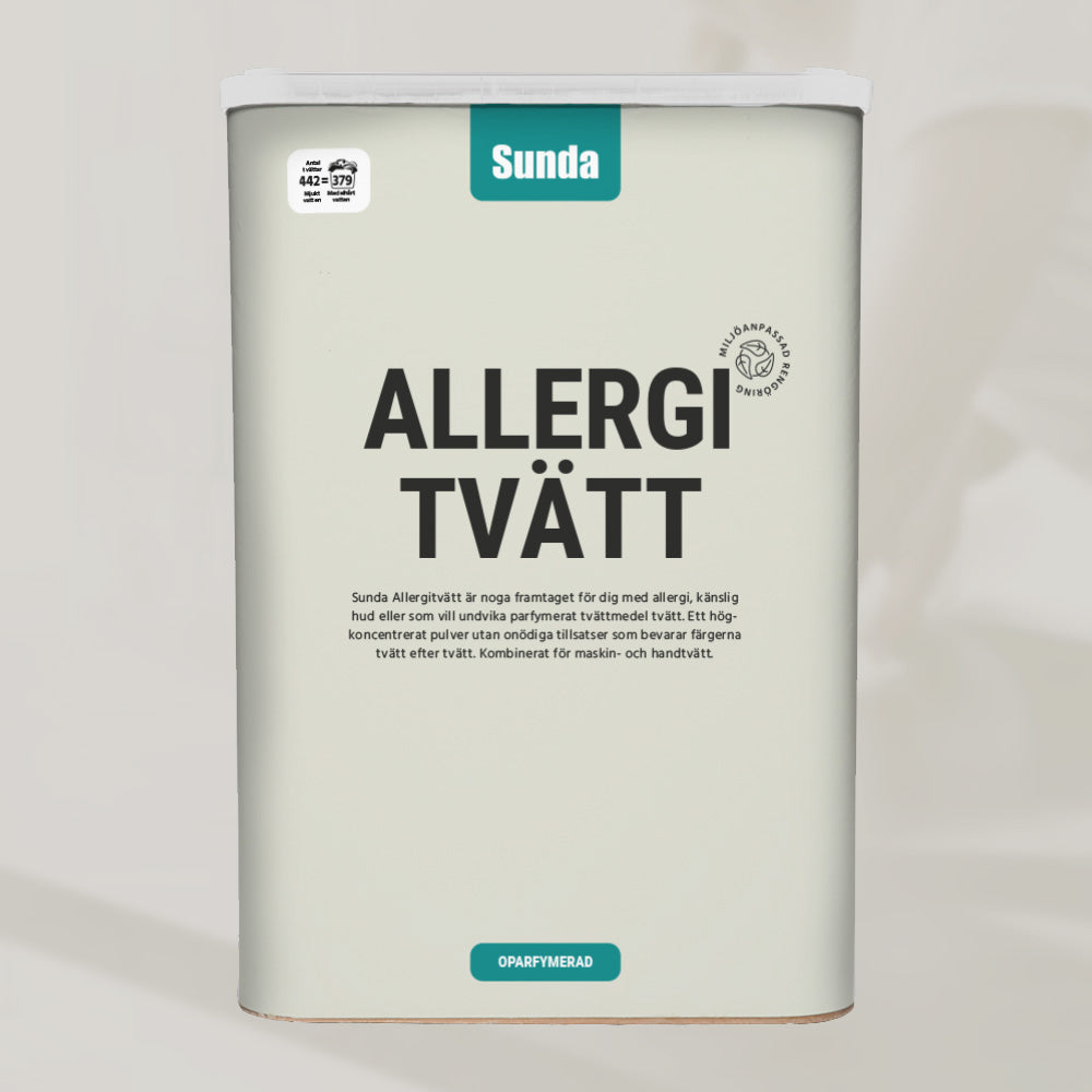 Ett allergivänligt pulvertvättmedel som aldrig riktigt tar slut. Vi har plockat bort alla onödiga tillsatser och har tagit fram ett högkoncentrerat tvättmedel med upp till 442 tvättar per förpackning. Ett allergivänligt tvättmedel utan parfym för dig med allergier, känslig hud eller som vill undvika parfymerade produkter. Skonsam mot hud, plagg och miljön.