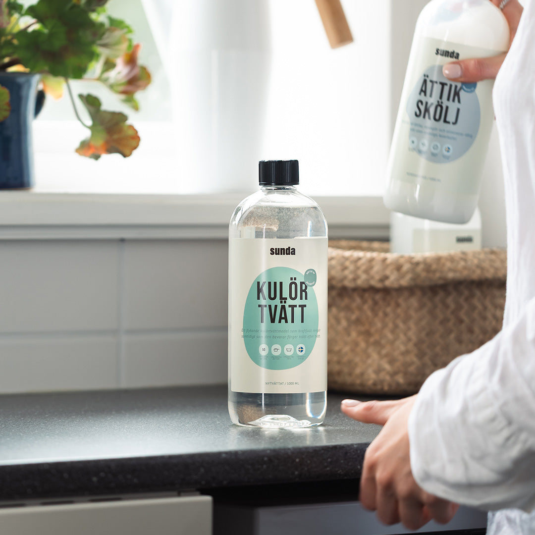 Kulörtvätt: ALKOHOLER, C12-14-, ETOXILERADE (>=2.5 EO), NATRIUMLAURYLETERSULFAT, 5-<15% Nonjoniska tensider, 5-<15% Anjoniska tensider, <5% Tvål, Parfym. Allergitvätt: ALKOHOLER, C12-14-, ETOXILERADE (>=2.5 EO), NATRIUMLAURYLETERSULFAT, 5-<15% Nonjoniska tensider, 5-<15% Anjoniska tensider, <5% Tvål, Enzymer.