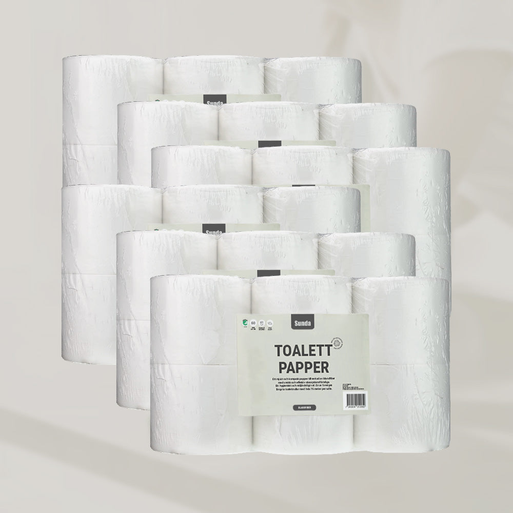 NYHET! Vårt tidigare 75m papper blir nu 60m. Ett mjukt och luddfritt toalettpapper med snabb och effektiv absorptionsförmåga. Har en lång hållbarhet med kompakta rullar som har hela 60 meter per rulle. Välj mellan en eller två balar för förmånligare pris.